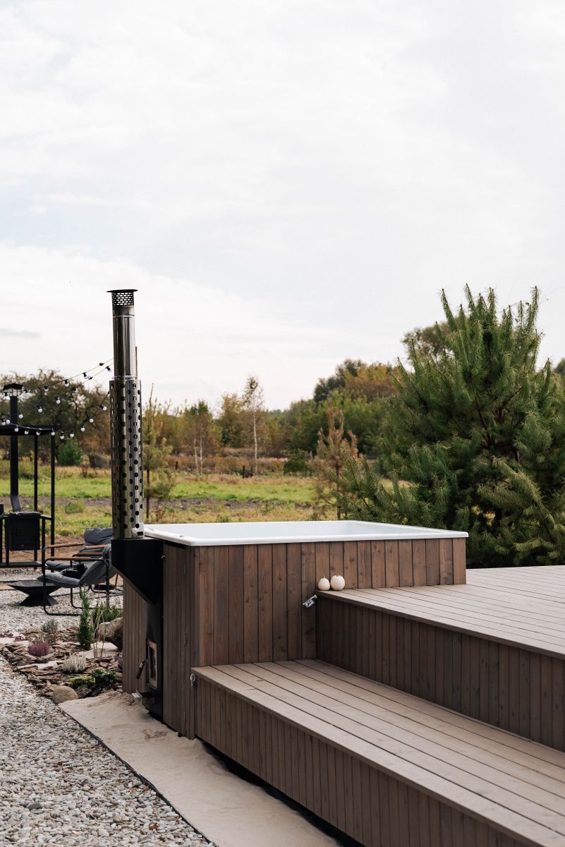 Купель можно использовать на улице при любой погоде. Изготовленная по нашему эксклюзивному проекту встроенная печь POLARSPA мощностью 35кВт нагревает воду за 1,5-2 часа до комфортной температуры. Печь абсолютно безопасна – защитный экран на дымоходе, жаропрочное стекло, никаких острых углов, а все технические коммуникации спрятаны внутри конструкции.