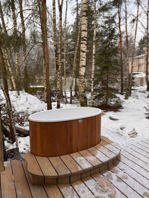 Идеальный овал, плавные линии, благородное термодерево. В этой купели с комфортом помещается один человек – то, что нужно для уютного спа-комплекса, массажного кабинета или домашней сауны.